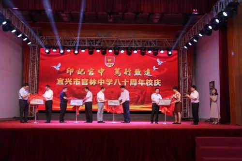 宜兴市官林中学80周年校庆活动即日举行,官林中学4只冠名基金揭牌仪式同时举行。江润铜业总经理骆伟栋参加了此次盛会,向母校捐赠200万元设立教育奖励基金。江润铜业与三川投资、永友粮油、江南电缆一起凝聚力量,致力推动教育事业发展。